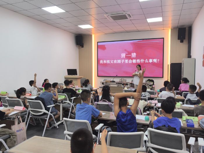 “大暑运金气,荆扬不知秋。”大暑节气主题课上,实践队员巧妙融合农事科普与文字美学。孩子们在学习“腐草为萤”“土润溽暑”“大雨时行”等独特物候现象的过程中,感悟先民“仰观天文、俯察地理”的智慧。在创作环节尤为热情——他们或将“暑”字变形为躬身劳作的农人,或为“暑”字铺展上金黄的麦浪,在一笔一划中触摸先民与自然的深刻联结,将抽象的文化之美化作可触可感的民族记忆。