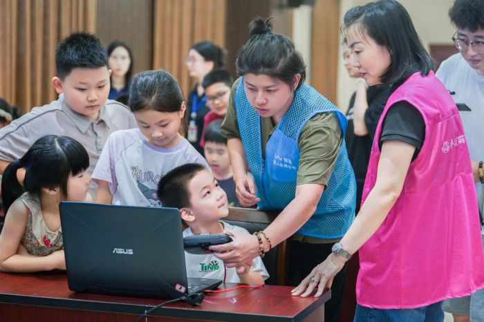 在模拟训练环节,孩子们四人一组,围坐在电脑前,全神贯注地操控着屏幕中的虚拟无人机。他们需要精准穿越悬浮的拱门、狭小的圆环和飘动的旗门。这种沉浸式训练不仅有效锻炼了他们的手眼协调能力与空间感知力,更将无人机操控的基本原理——如姿态调整、油门响应、方向控制——以最直观的方式烙印在他们的操作体验中。