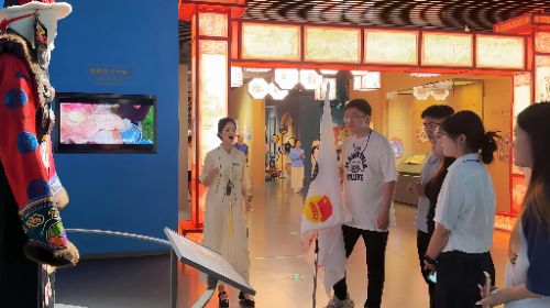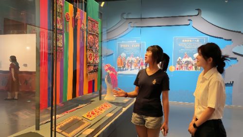 在土族盘绣专题探寻区,展区以实物陈列、场景还原、多媒体演示等多元形式,全方位呈现这一民族文化瑰宝。民俗技艺展区里,土族盘绣制作的绷架、彩线、针具,以及融入盘绣元素的服饰、生活饰品有序陈列,不同年代盘绣珍品,清晰展现从图案设计、选线配色到针法运用的完整流程,还有土族同胞在传统节日、生活场景中运用盘绣的文化寓意。博物馆设立的互动体验区,让队员们得以近距离观察盘绣纹理、触摸绣品质地。“以前只觉绣品好看,现在明白每一针每一线都藏着文化传承,绣出的是民族历史与情怀。”队员们的感慨,尽显沉浸式文化体验带来的思考,也让大家更坚定传播、守护这份珍贵文化遗产的决心。