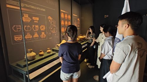 图为实践队员学习马家窑等文物。 谢永蕊 拍摄