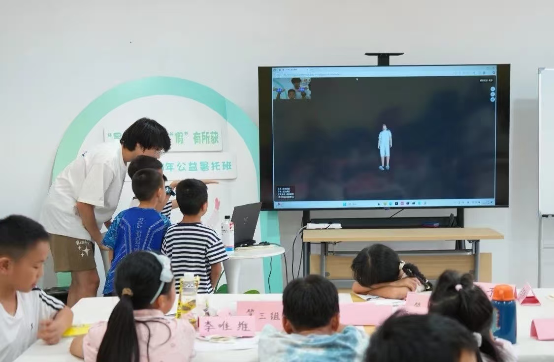 在江宸社区为期15天的AI科普支教实践活动中,“青衿执炬,AI领航”团队通过自主研发的“智塑童程”AI教学平台,为社区儿童带来了一场别开生面的科技启蒙。从3D模型智能分析到语音交互技术应用,团队成员将前沿AI技术转化为生动有趣的互动体验课堂,帮助社区儿童构建起系统的AI知识框架。当孩子们通过手势操控虚拟模型,通过语音指令指挥AI助手,科技的种子已在他们幼小的心灵中生根发芽。