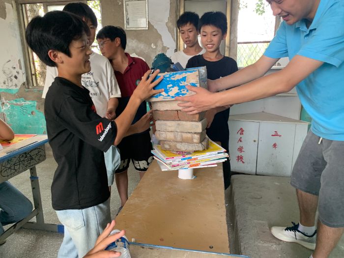 教室里的课程同样精彩纷呈。趣味汉字课上,实践团成员用绘本故事引出汉字的起源,孩子们跟着一笔一划地书写;手工课上,老师们引导学生们共同做手工,培养孩子们的动手能力;身心安全健康教育课上,老师们们通过情景模拟,教孩子们如何应对陌生人搭讪;体育课上,老师们引导学生共同玩耍,让校园充满欢声笑语;劳动课程中,孩子们跟着成员们一起打扫校园,体会劳动的乐趣;实验课上,成员给学生们演示承重趣味实验,激发孩子们的科学兴趣......