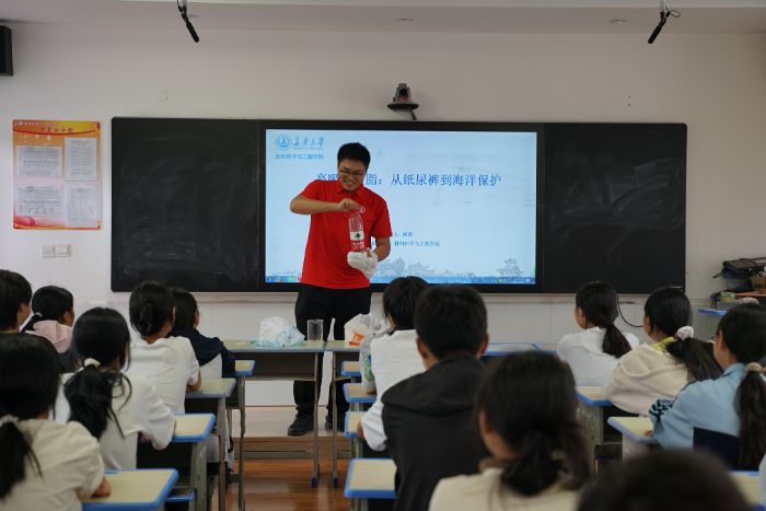 活动以"秦岭生态卫士"角色切入,阐释材料科技如何守护绿水青山;通过高吸收树脂实验,揭示纸尿裤材料在海洋油污处理中的创新应用;展示超疏水材料的仿生荷叶效应,以及蓄能发光材料无需电源即可持续发光的特性。博士生邵汀荃更以混凝土发展史为线索,串联起从古罗马万神殿到港珠澳大桥的千年材料史诗,并介绍现代混凝土的自我愈合与自清洁功能。