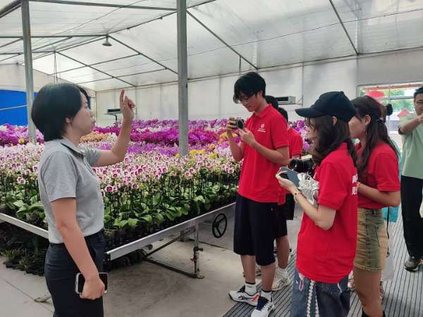 图为实践队队员参观矩宝公司的蝴蝶兰种植基地。供图张锦雯