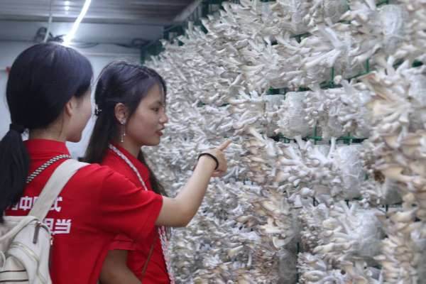 图为实践队队员参观福建云佳安生物科技有限公司菌菇示范基地。林韵茗供图