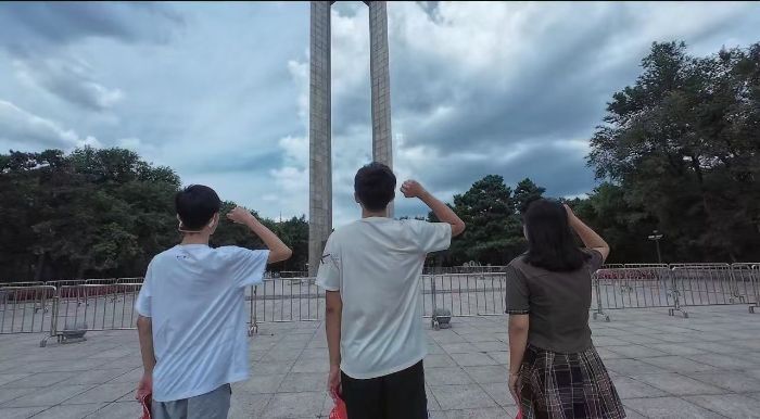 3名成员高举右拳,面向纪念碑庄严宣誓:“以革命先烈为榜样,传承红色基因;以青春之我,建设青春之中国!”铿锵的誓言在南湖公园上空回荡,吸引了众多游客驻足见证。实践团还邀请游客共读《七律・解放长春》等革命诗篇,通过互动的形式,让人们更加深刻地铭记那段反法西斯战争胜利后迎来解放的历史,让反法西斯精神的火种在每个人心中传承。