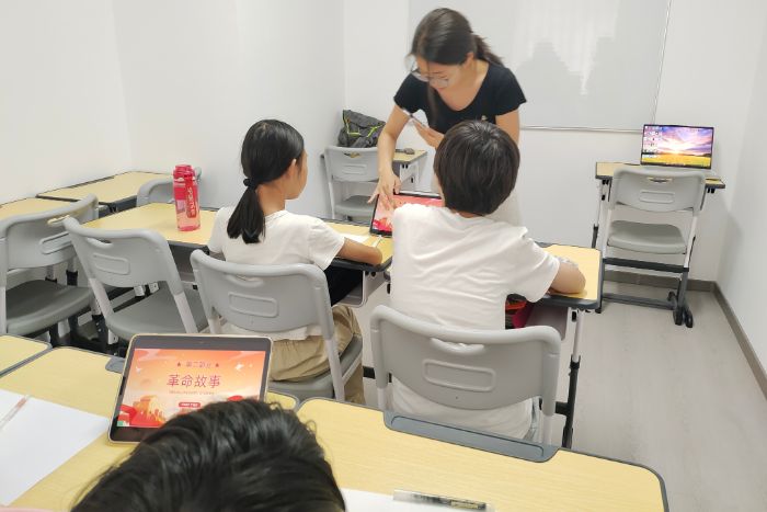 由倾听到讲述:让红色种子“落”下去 在村口的树荫下,队员们听村民讲往事,乡音里的“苦日子”与“甜现在”对撞,让他们明白:红色基因早融在百姓的日子里——先辈的奋斗,早已成了后辈守家兴业的底气。这份感悟很快化作行动。队员们将所学转为文字做出完整的教学课件,走到小学生的身边,把“筑地道御敌”编成趣味故事,教孩子们了解那段红色过往。课堂末尾,孩子们纷纷掏出画笔绘出他们心中的地道。从听老乡讲“老故事”,到给孩子讲“新感悟”,队员们成了红色种子的“搬运工”,让信仰的火苗在传递中越烧越旺。