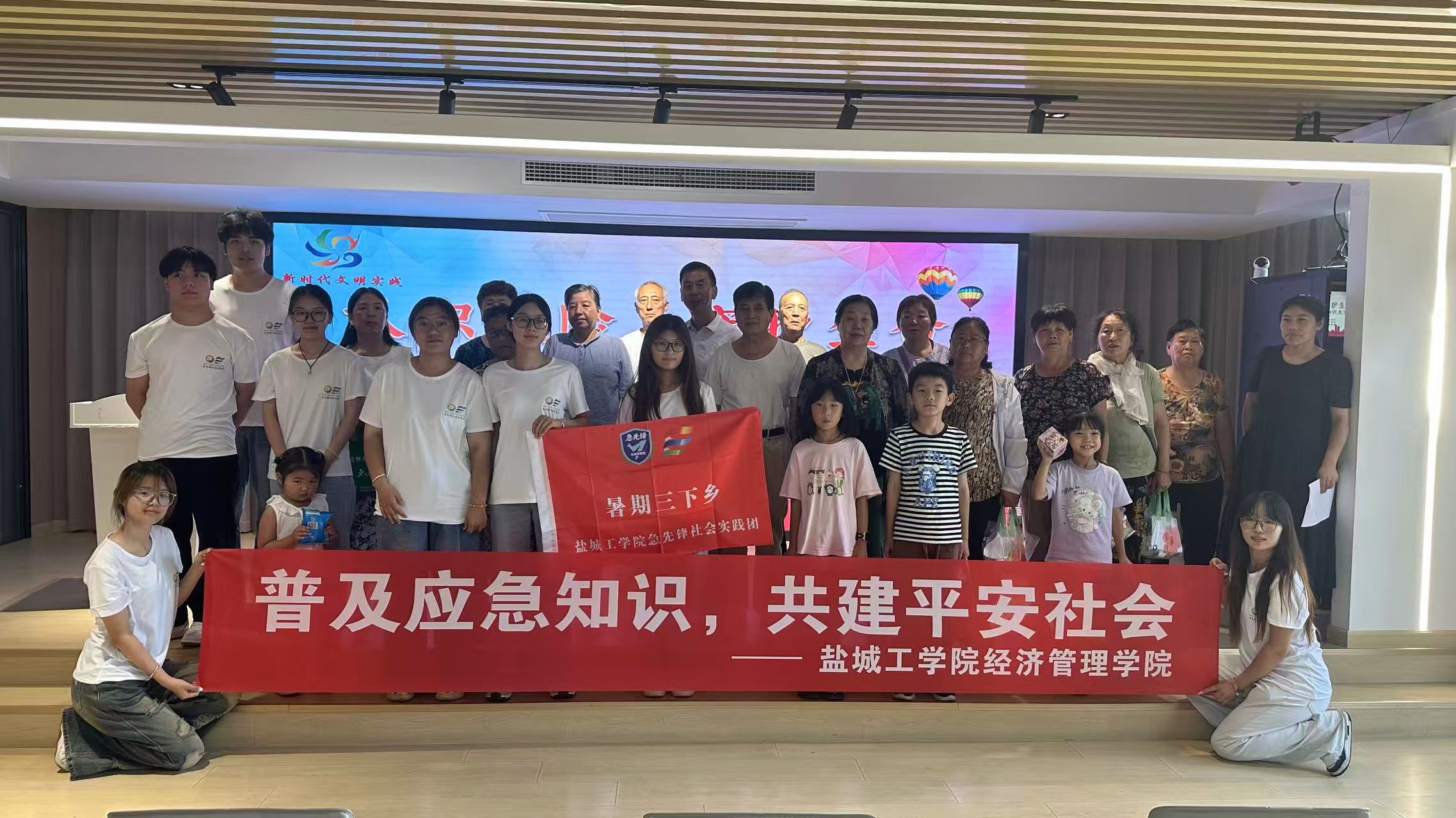 青春恰似火,正逢扬帆时,这个夏天,盐城工学院经济管理学院应急管理专业“急先锋”社会实践团,走进盐城市东亭湖街道北林社区,开启8月13日- 19日为期7天的应急知识宣传“三下乡”之旅。期间,团队举办两场“认识风险·守护生命”应急知识宣传讲座,为居民普及自然灾害避险、急救技能、居家安全等知识;同时探访2户家庭,为独居老人送去物资与陪伴。“急先锋”以专业为笔、温情为墨,书写青春服务篇章,筑牢社区安全防线,让应急知识与人文关怀在基层落地生根 。