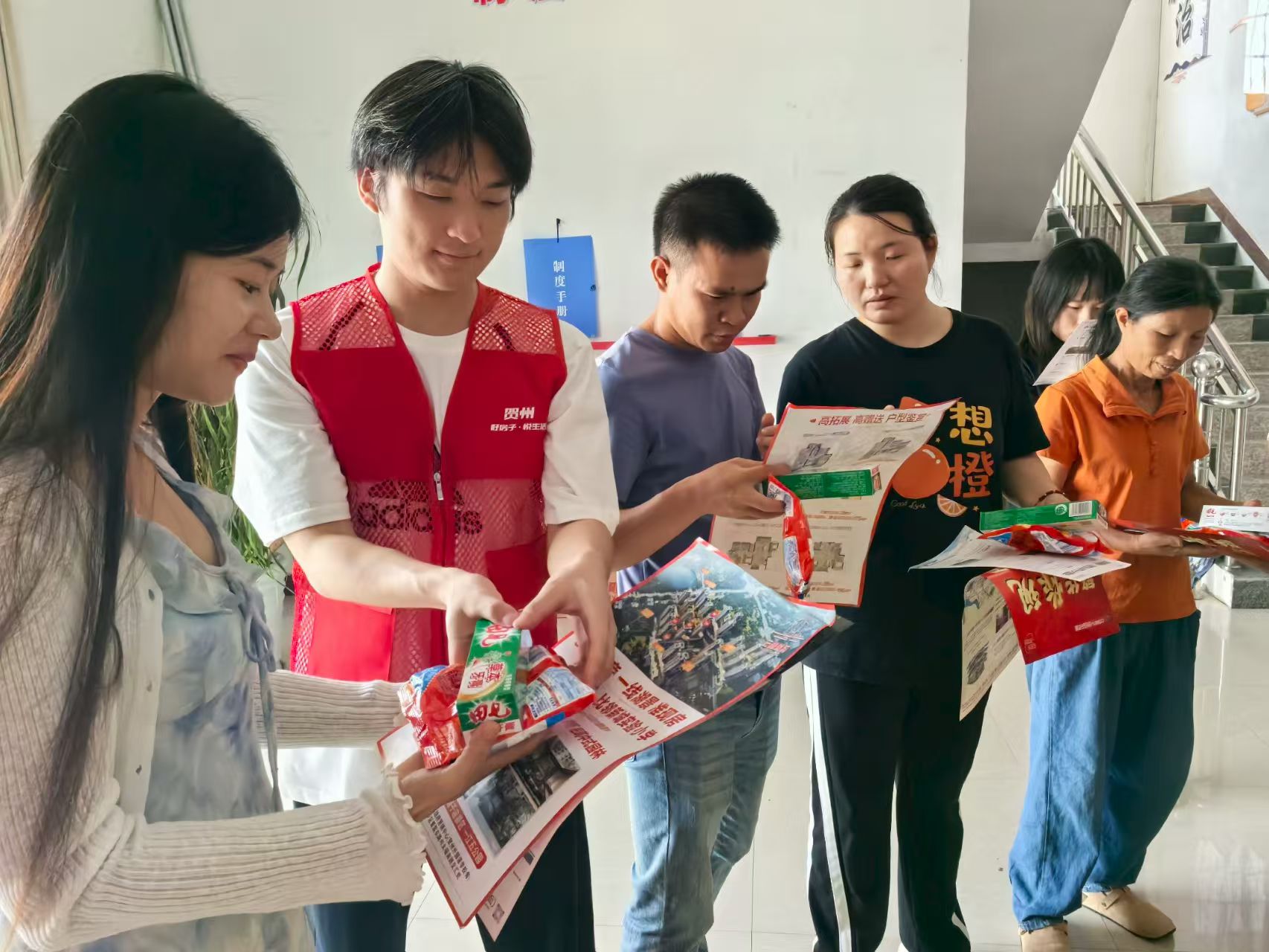 同时,队员们向参与活动的村民分发牙膏、洗衣粉、洗衣液等小礼品,吸引更多村民关注乡村宣传工作,现场同步开展短视频与公众号知识普及,让村民了解新媒体宣传的价值