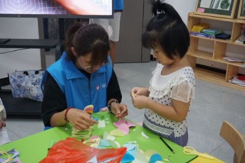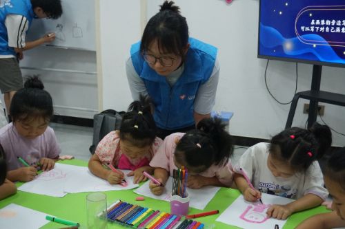 志愿者们通过色彩解读,鼓励孩子们分享内心故事,帮助不善言辞的孩子将画作转化为情感出口。
