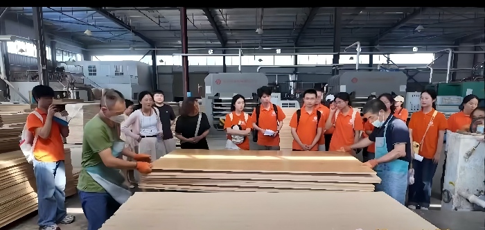 车间中段,实践团成员们被一台全自动刷胶机吸引,纷纷围拢观察。机械臂灵活舒展,将植物淀粉基环保胶均匀涂布在竹板上——0.3毫米的胶层厚度,误差控制在±0.02毫米内,精准度远超人工操作。“以前人工刷胶,一天最多处理50张板,还容易厚薄不均。”向导指着设备计数器说,“这台机器每小时能刷300张,而且胶料甲醛含量趋近于零。”成员们凑近细看,刷胶后的竹板随即进入60℃恒温烘干隧道,过去依赖自然晾晒、受天气制约的难题,正被机械精准度与环保技术合力攻克。从手工到智能的工序跨越,让大家直观体会到:科技赋能不仅是效率的突破,更以绿色配方重塑着产业生态,让“科技破解产业痛点”从理论变成了眼前可触的现实。