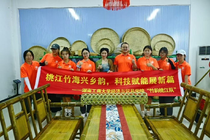 近日,湖南工商大学经济与贸易学院“三下乡”社会实践团——竹韵桃江队,满怀热忱奔赴桃江县,深入湖南锦域竹业有限公司,开启了一场别开生面的非遗竹编调研之旅。这片楠竹繁茂之地,承载着千年竹编技艺,队员们将在这里,探寻传统与现代交织的非遗传承密码。