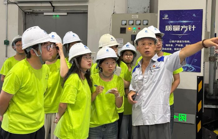图为华域皮尔博格有限公司负责人向实践团介绍工厂生产线。孔雅琪 供图
