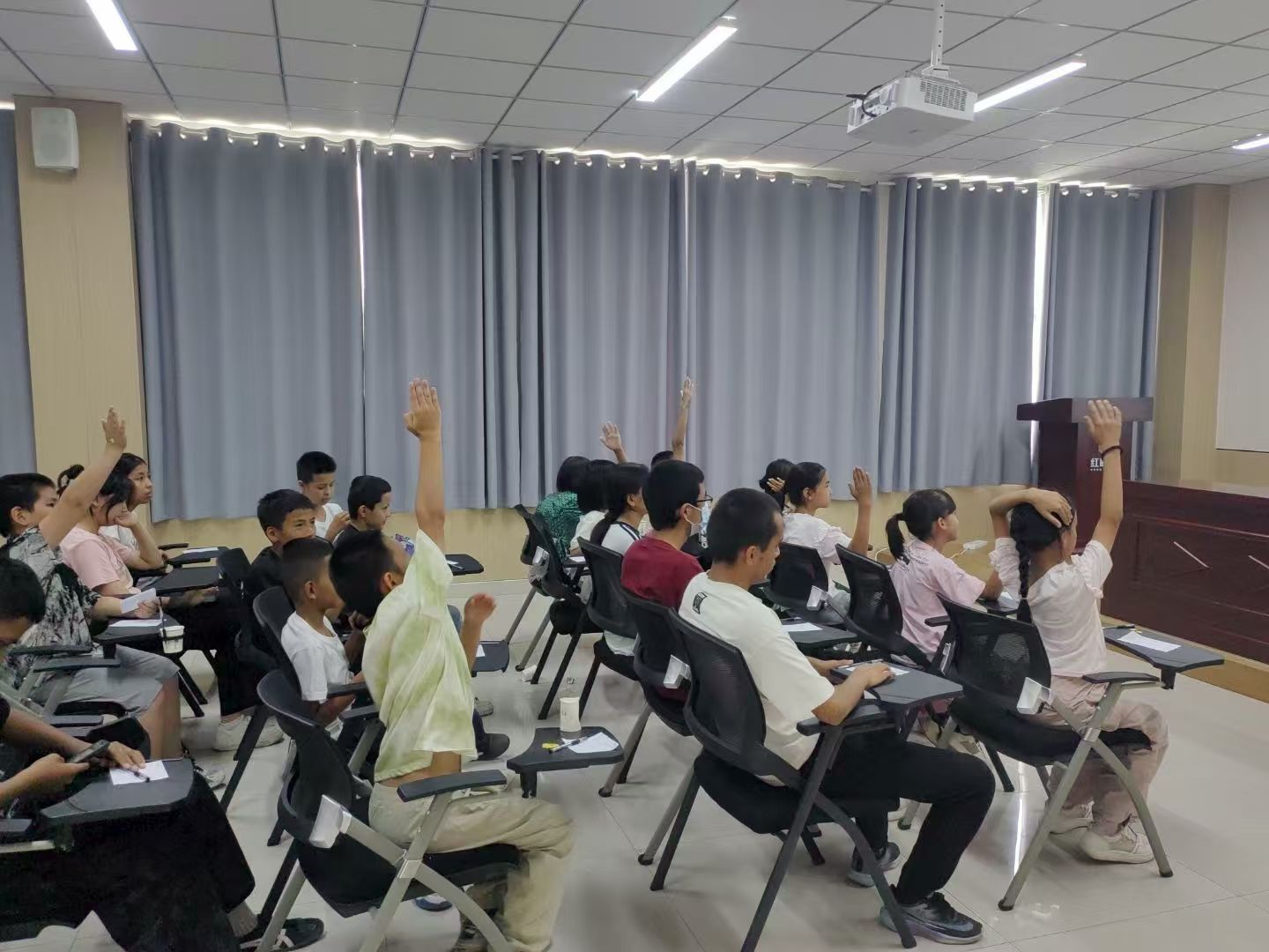 ▲图为“反诈小卫士”互动答题环节青少年积极举手回答问题