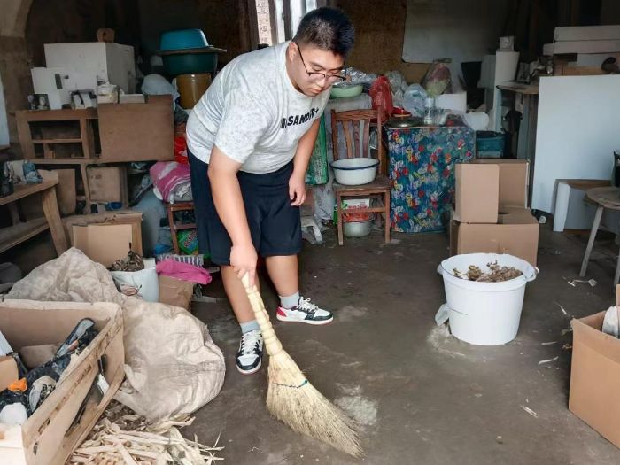 实践团成员走进多位老人的家中,帮助他们打扫卫生。实践团成员用自带的清洁工具进行全面打扫。清理庭院柴火、归置农具、清扫房间、擦拭家具,用两个小时便让原本昏暗的屋子重新整洁明亮。