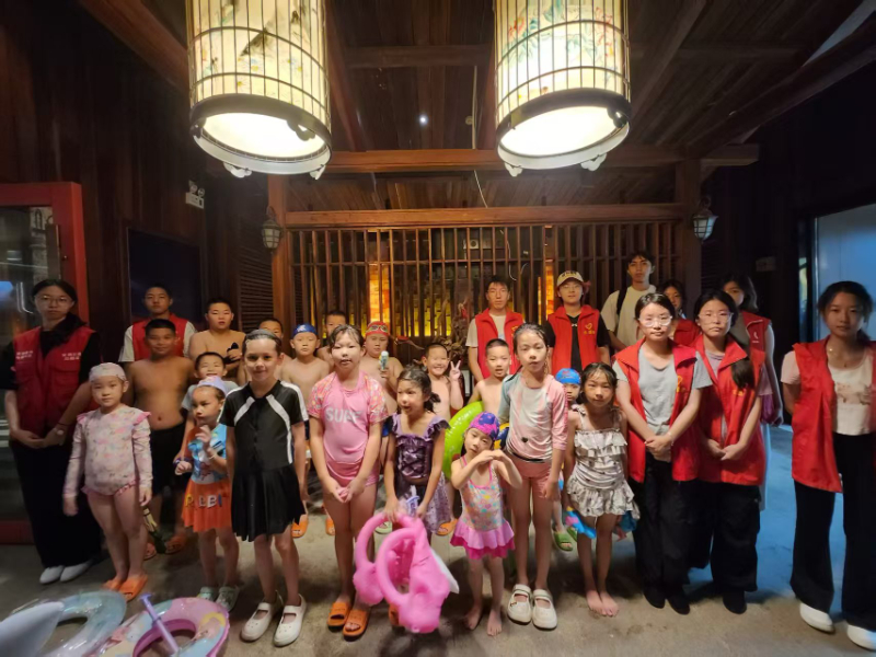 图为实践团成员带领孩子们去水上乐园游玩