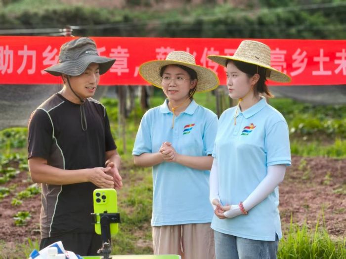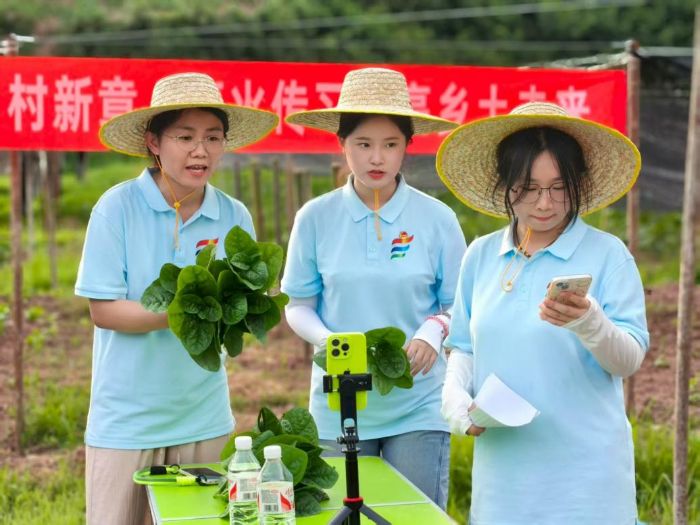 为深入贯彻乡村振兴战略,推动农业产业转型升级,7月15日18时30分,重庆外语外事学院“青山逐梦薪火传习”溪望启航乡村振兴实践团,携手巴夔户牖集团在羊桥村巴夔户牖旗下的绿色蔬菜园共同开展“绿色蔬菜巴夔农产甄选阁”主题直播活动。此次活动聚焦拓宽农产品销售渠道、提升品牌影响力,积极探索“互联网+现代农业”发展新模式,重庆大学建筑系返乡创业毕业生、菜园负责人王云辉全程参与。