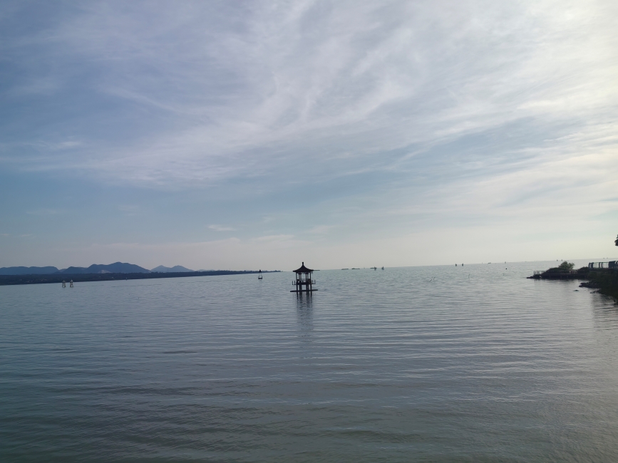 最后一站来到巢湖边时,夕阳正为湖面镀上一层柔和的金光。辽阔的水域在暮色中舒展延伸,粼粼波光随涟漪缓缓流动,与沿岸错落的草木、远处渐隐的山峦形成层次分明的景致。晚风穿过岸边树丛,携来湖水特有的清润气息,山环水绕的自然风貌在夕阳余晖中更显静谧悠远,勾勒出巢湖生态修复后的鲜活轮廓。
