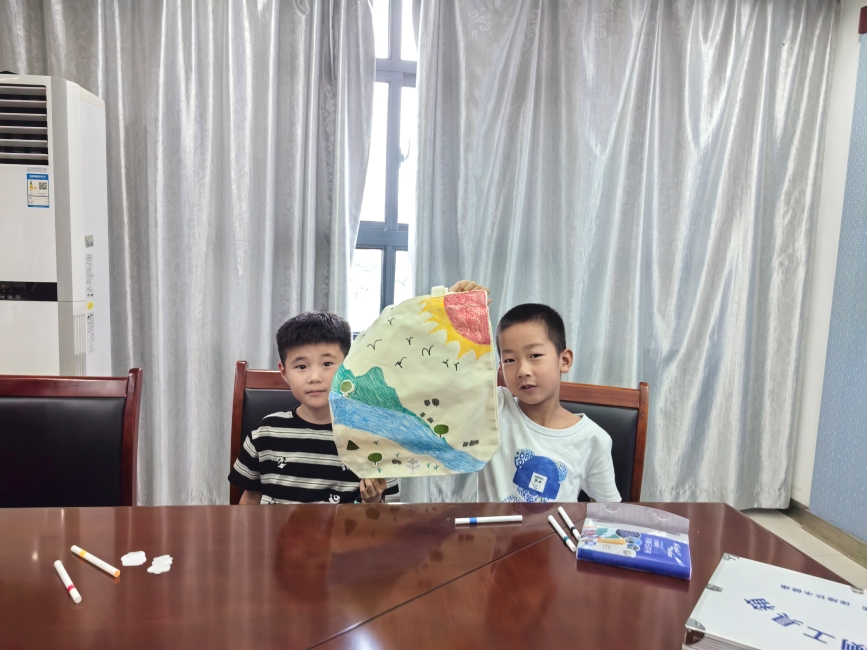 志愿者们在孩子们创作的过程中不时地走到他们身边,询问他们的创作灵感,倾听他们对河流的想法。孩子们稚嫩的画笔和纯真的想法,让每一个帆布包都成为了一件独特的河流保护宣传作品。创作完成后,孩子们纷纷展示自己的作品,分享自己心目中的河流是什么样子的,在交流中进一步强化了对美好河流生态的追求。
