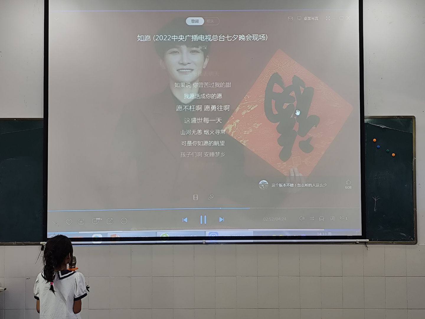 下午2时,“七彩假期,梦想绽放”文艺汇演在学校多媒体教室正式上演。孩子们用一个星期里学到的本领,为老师、家长和同学们呈现了一场充满童趣与活力的演出。首先,二年级学生表演的《加油呀》舞蹈,用整齐的动作表达对支教老师的感激;四年级学生的歌曲《如愿》,歌词字里行间都是对未来祖国繁荣昌盛和美好生活的向往;还有三年级学生的歌曲《祖国的花朵》,表现了孩子们是祖国的未来与希望,引得台下阵阵掌声。