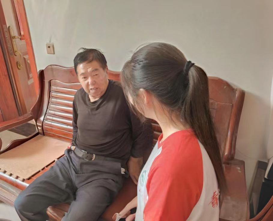 (图为团队成员正在采访参观者) 当天下午,实践团成员还走访了居住在纪念馆附近的革命老兵陈爷爷。老人虽听力渐弱,但回忆起当年的战斗岁月,眼神依旧明亮。他讲述了新四军战士在缺衣少食的条件下,如何凭借坚定信念坚守阵地,如何与当地群众并肩作战、互相扶持的故事。当被问及对年轻人的期望,老人摆摆手:“不用做惊天动地的大事,把书读好、把日子过好,遇到困难别退缩,对身边人多帮衬,这就是把新四军精神传下去了。”朴实的话语里藏着最真挚的期盼,让团队成员瞬间读懂了传承的真谛:红色精神从不是博物馆里的陈列,而是融入日常的行动与坚守。