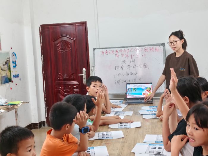 导语 在7月29日至8月15日这段骄阳似火的暑期时光里,海南大学乘风书院海南自贸港海洋生态保护实践团踏上了一段意义非凡的征程。他们跨越山海,奔赴贵州、广西、河南、山西这四个非海滨省份,将海洋保护的知识与理念,如同播撒珍贵的种子一般,传递给当地的学子们。此次宣讲活动所倚仗的资料,皆凝聚着实践团队员于7月24日深入三亚珊瑚研究所调研的心血结晶。在那里,队员们探寻到海洋生态的奥秘与危机,带着满满的收获,开启了这场跨越地域限制的蓝色知识之旅。
