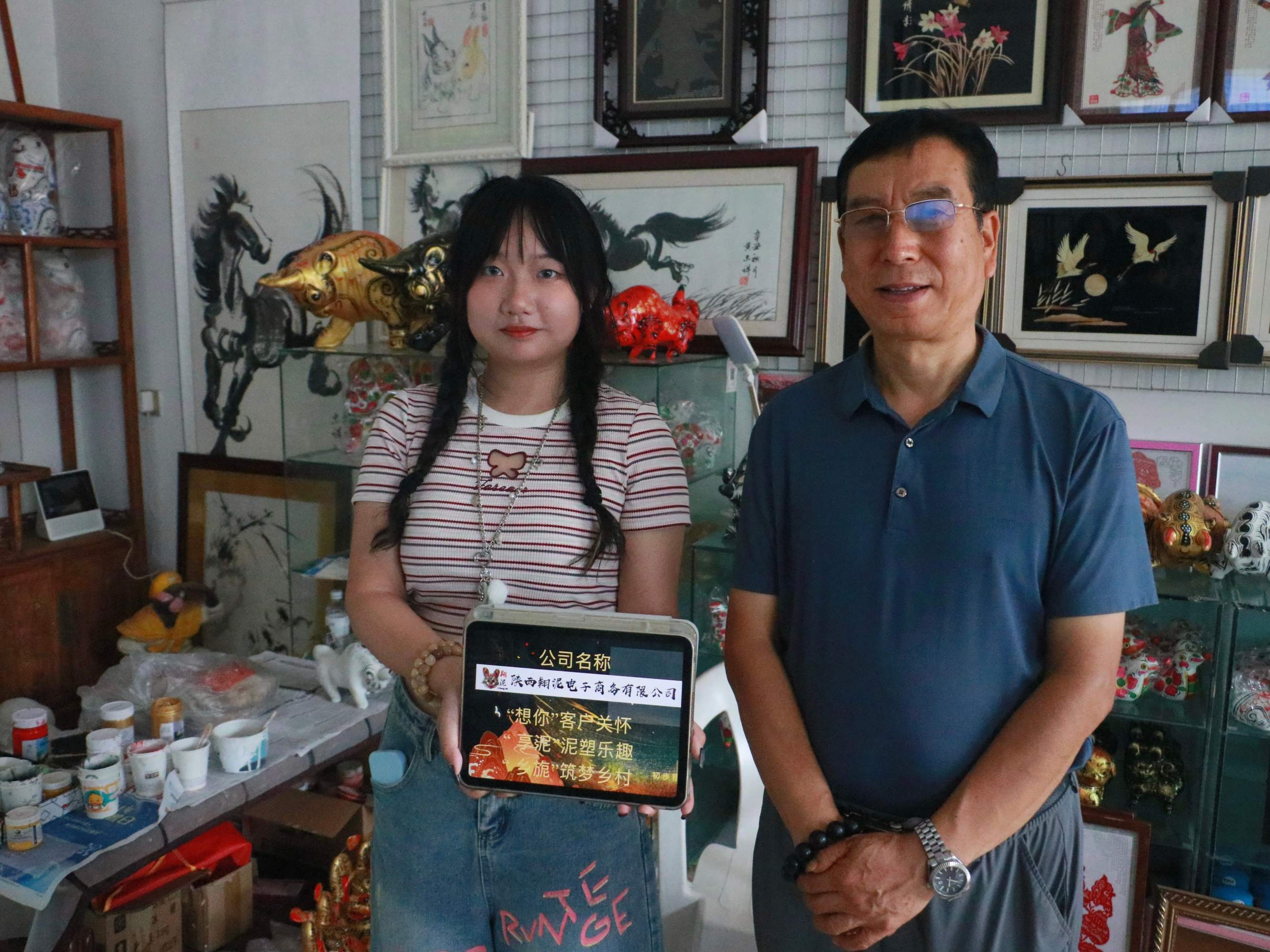 针对凤翔泥塑传播难、市场受限问题,团队创新打造“泥凤呈翔”品牌。该品牌LOGO以腾飞凤凰结合泥塑肌理和篆刻元素,红黑色调凸显喜庆厚重;创作IP“妮妮”,呼应“泥泥”,为文创产品拓展空间。黄忠祥高度认可,决定用于工坊产品和线上旗舰店。