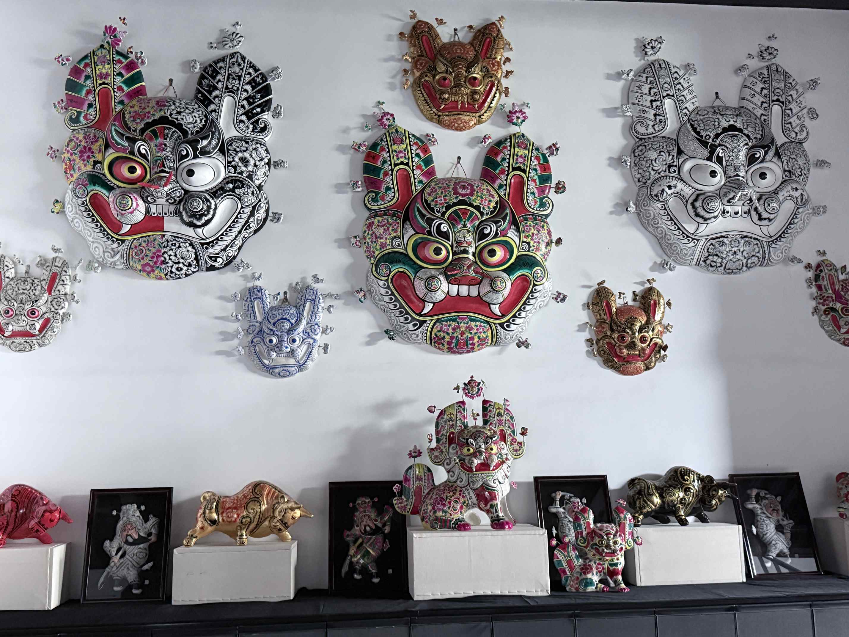 随后,实践队参观凤翔泥塑博物馆。展厅内,数百件彩绘泥塑作品陈列展示,黑底红纹的坐虎、粉面造型的娃娃鱼等经典样式兼具艺术性与地域特色。期间,黄忠祥现场演示泥塑上色技艺,仅用三分钟便完成一件 “招财兔” 作品。他介绍:“凤翔泥塑的色彩与纹样,既承载唐代艺术风格,也融入了当地民俗文化元素。” 队员们认真记录技法细节,深入了解非遗背后的文化内涵。