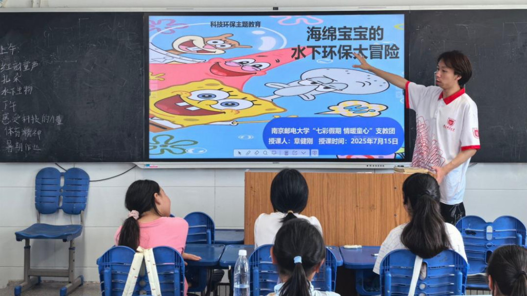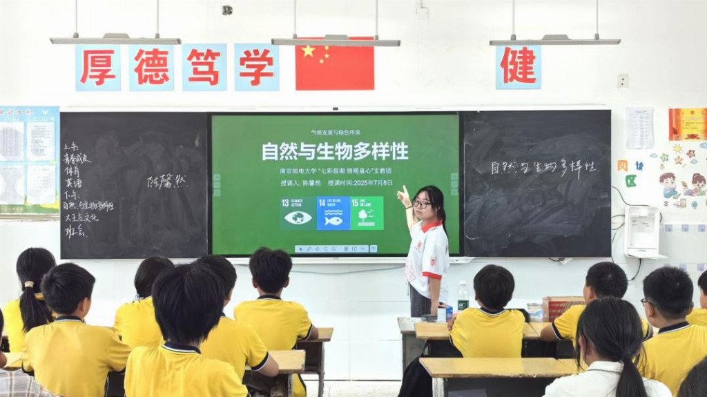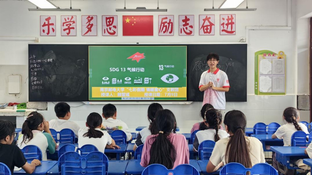 为响应联合国开发计划署与中国大学生知行促进计划共同发起的Movers4Climate绿色乡村青年行动,推动乡村可持续发展与环保教育,弥合教育鸿沟,2025年7月7日至25日,南京邮电大学“七彩假期情暖童心”志愿服务团队深入江苏省宿迁市泗洪县车门乡与石集乡开展暑期实践活动。