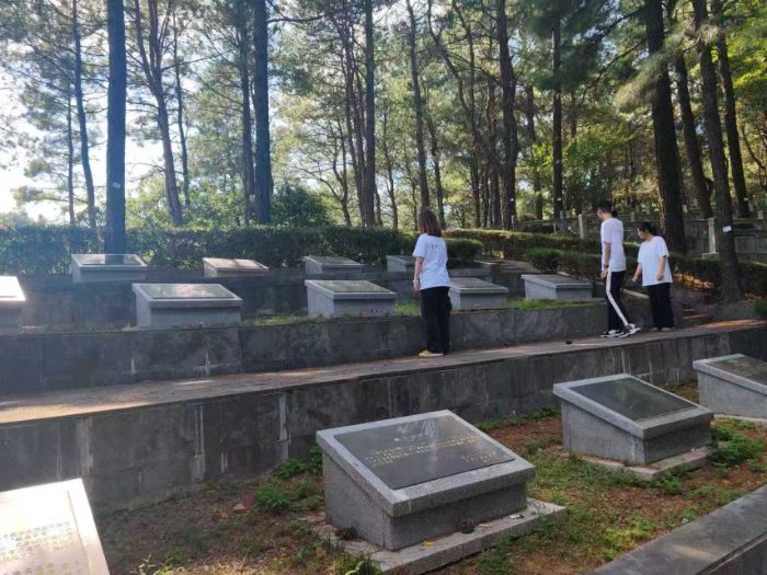 “苍松凝翠守英烈,丰碑矗立映初心”。实践团专程前往黄龙岗新四军抗日殉国烈士墓与皖南事变烈士陵园,举行庄重的祭扫活动。在黄龙岗烈士墓前,队员们手捧白菊,缓步走向镌刻着131位皖南事变牺牲指战员姓名的墓碑,鞠躬致敬、静默默哀,以鲜花寄哀思,告慰长眠的革命先烈;在皖南事变烈士陵园,队员们沿着展牌追溯历史脉络,从“千古奇冤,江南一叶”的悲愤过往,到先烈们坚守信仰、宁死不屈的抗争事迹,每一段史料都让队员们接受深刻的精神洗礼,进一步叩问初心、坚定理想。