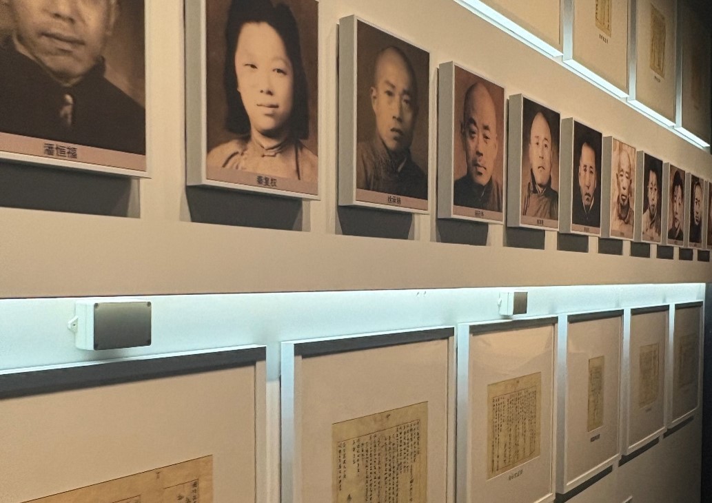 图为队员拍摄纪念馆内陈列照片及文物。赵佳文 供图