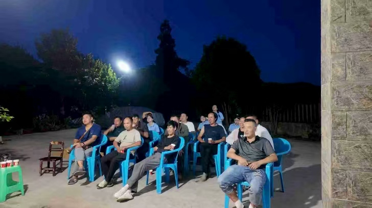 直播结束后,团队兵分两路:一路跟随村支书王大爷巡村,沿途向村民发放自制的“普通话学习礼包”(内含草帽、帆布包、故事书及文具);另一路则在村文化广场支起“夜间课堂”,将普通话教学与趣味游戏结合,为村民们打造了一场“寓教于乐”的文化盛宴。“一二三四,跳格子!”在跳大绳环节,队员们用普通话喊着口令,村民们尤其是孩子们围成一圈,跟着节奏跳跃,笑声不断;“左三圈,右三圈,红歌里面找答案”——猜红歌环节中,村民们用方言哼唱《映山红》《洪湖水浪打浪》,队员们则用普通话接唱,现场气氛热烈;“击鼓传花”环节中,拿到花的村民需用普通话讲述一句家乡故事,张奶奶讲起“当年修水库”的往事,台下掌声雷动……“这些游戏太有意思了!以前觉得学普通话枯燥,现在边玩边学,连我家小孙子都抢着要学‘跳房子’的普通话口令!”村民刘婶举着刚得到的印有“安山小课堂”的帆布包,笑得合不拢嘴。