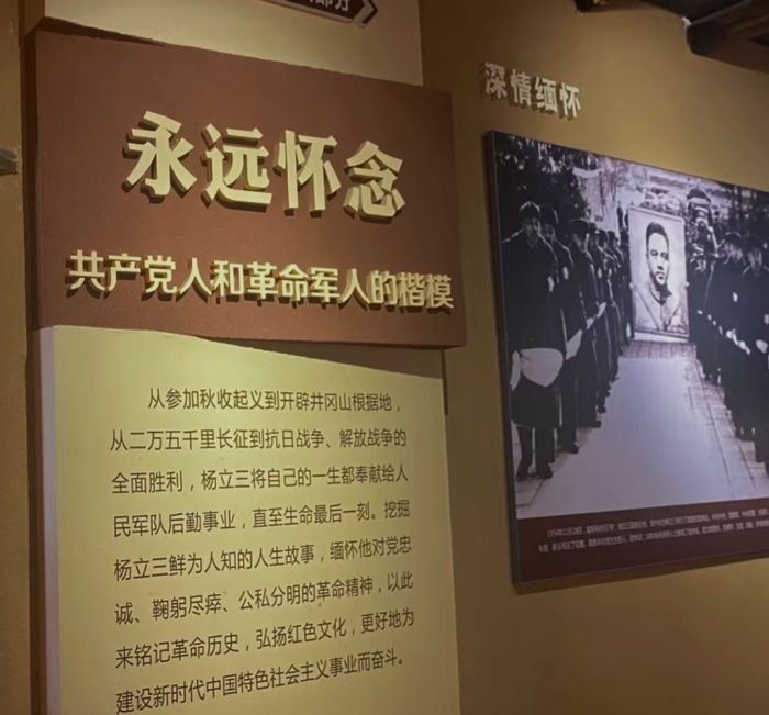 “鞠躬尽瘁”展区的内容令人动容。这里展示了杨立三在新中国成立后,带病坚持工作的事迹:即便身患重病,他仍心系国家建设和人民福祉,伏案处理公务直至生命最后一刻。展墙上“为人民服务而死,虽死犹荣”的手稿字迹刚劲,正是他一生的写照。实践团成员们低声交流,被这份“春蚕到死丝方尽”的奉献精神深深震撼,更明白了“初心易得,始终难守”的分量。