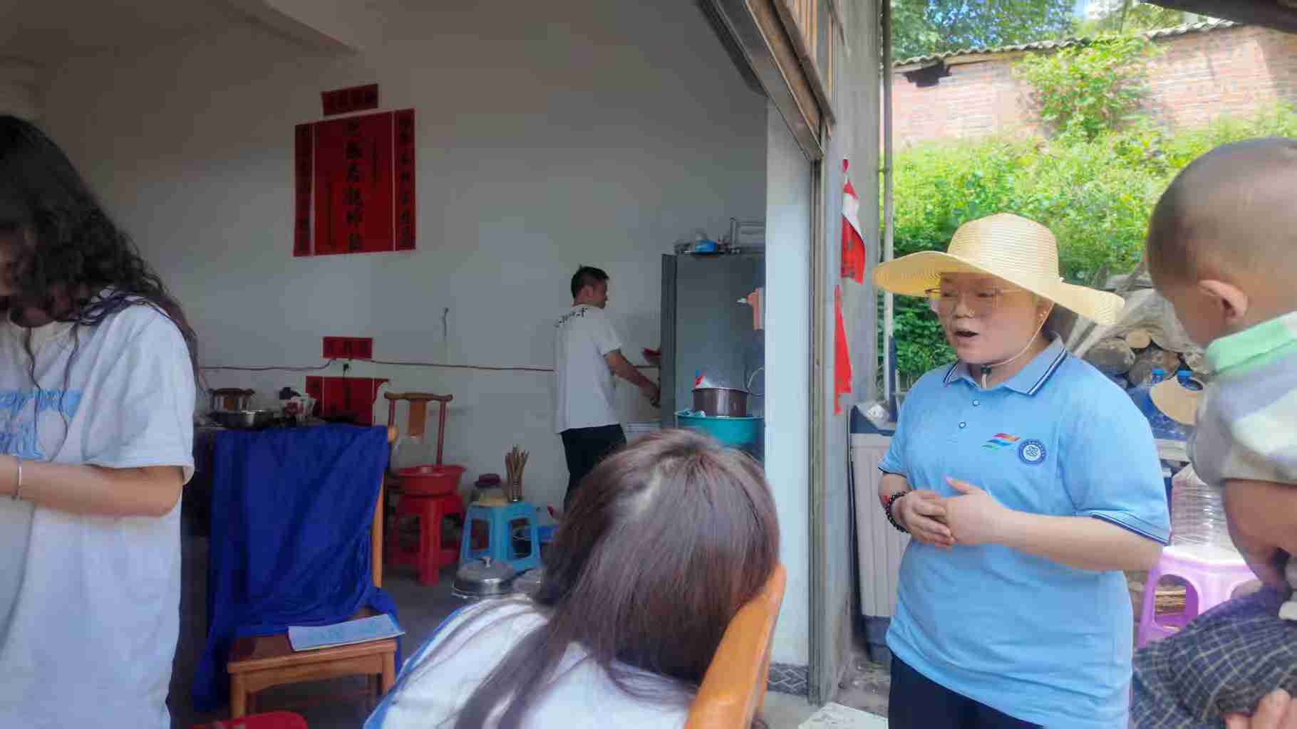 为深入贯彻落实习近平总书记关于语言文字工作的重要指示精神,推动国家通用语言文字普及提升工程深入实施,2025年7月6日,由毕节工业职业技术学院师生组成的"语你同行"乡村振兴实践团队在毕节市七星关区安山村组织开展了为期7天的推普实践活动。晨光熹微:体操韵律唤醒乡音晨曦卯时三刻,薄雾中的安山村响起《运动员进行曲》的清越号角。村口百年香樟树下,“语你同行”乡村振兴实践队编排的推普广播体操拉开帷幕。"第三节,扩胸运动——‘振兴乡村,语通四方’!"把字正腔圆的诵读融入体操口令,恰如朱熹"半亩方塘一鉴开"的教育智慧。当"第九套广播体操"的机械播报转为生活化的"晒谷要趁早,学语正当时",戴红领巾的孩童将"伸展运动"化作"风摆杨柳"的成语接龙,让白居易"绿杨阴里白沙堤"的意境跃动成现实的教学韵律。