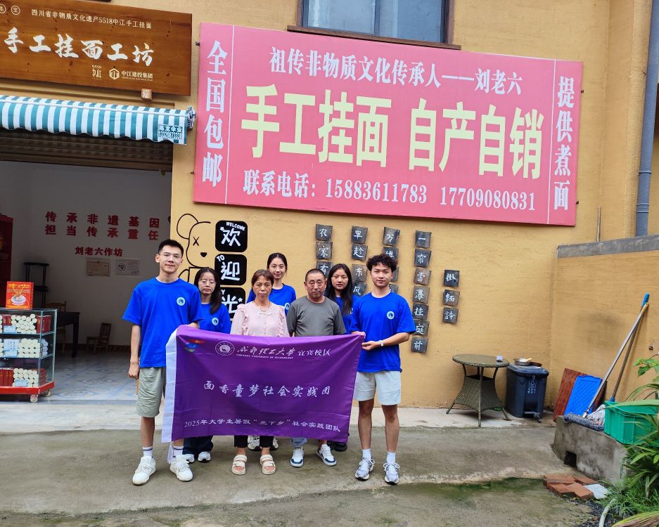 “以前在课本里读黄继光的故事,只觉得英勇,今天站在这里,看到实物、听到细节,才真正明白‘英雄’二字的重量。” 实践团成员谢茜在参观后动情地说。参观结束后,大家自发围坐在纪念馆广场的长椅上,开展 “新时代如何传承继光精神” 讨论。“和平年代的英雄精神,是遇到困难不退缩,是服务社会敢担当。”“作为理工学子,我们要把这种精神融入专业学习,将来用知识为国家建设出力。” 一句句真挚的感悟,让红色基因在青春心中扎根。 此次红色研学不仅是一次精神洗礼,更成为实践团成员的 “成长坐标”。大家纷纷表示,将以英雄为榜样,把爱国情怀转化为行动力量,在新时代的征程中勇担使命。非遗焕新:一场青春与匠心的碰撞,激活老手艺生命力 “和面要掌握好水温,醒面得看天气调整时间,绕条更是个技术活,这 18 道工序,一道都不能少!” 在中江挂面村,国家级非物质文化遗产中江挂面传承人刘文友,一边带领实践团参观传统制面作坊,一边讲述挂面制作的 “门道”。当提到 “必须用非碘盐才能保证面条筋道不酸” 的祖训时,老人眼中满是对传统工艺的坚守。但他也坦言,如今村里年轻人大多外出务工,愿意学做挂面的人越来越少,销售渠道狭窄也让老手艺面临 “酒香也怕巷子深” 的困境。 了解到这些难题后,实践团成员结合青年视角,展开 “头脑风暴”。“可以拍制面过程的短视频,把您讲的故事剪进去,发到抖音、快手这些平台,让更多年轻人看见老手艺的魅力!”“咱们可以搞‘非遗体验游’,让游客亲手试试和面、盘条,既好玩又能传播文化。”“还能设计文创包装,把中江的红色元素、山水风光印在挂面礼盒上,提高产品附加值。”