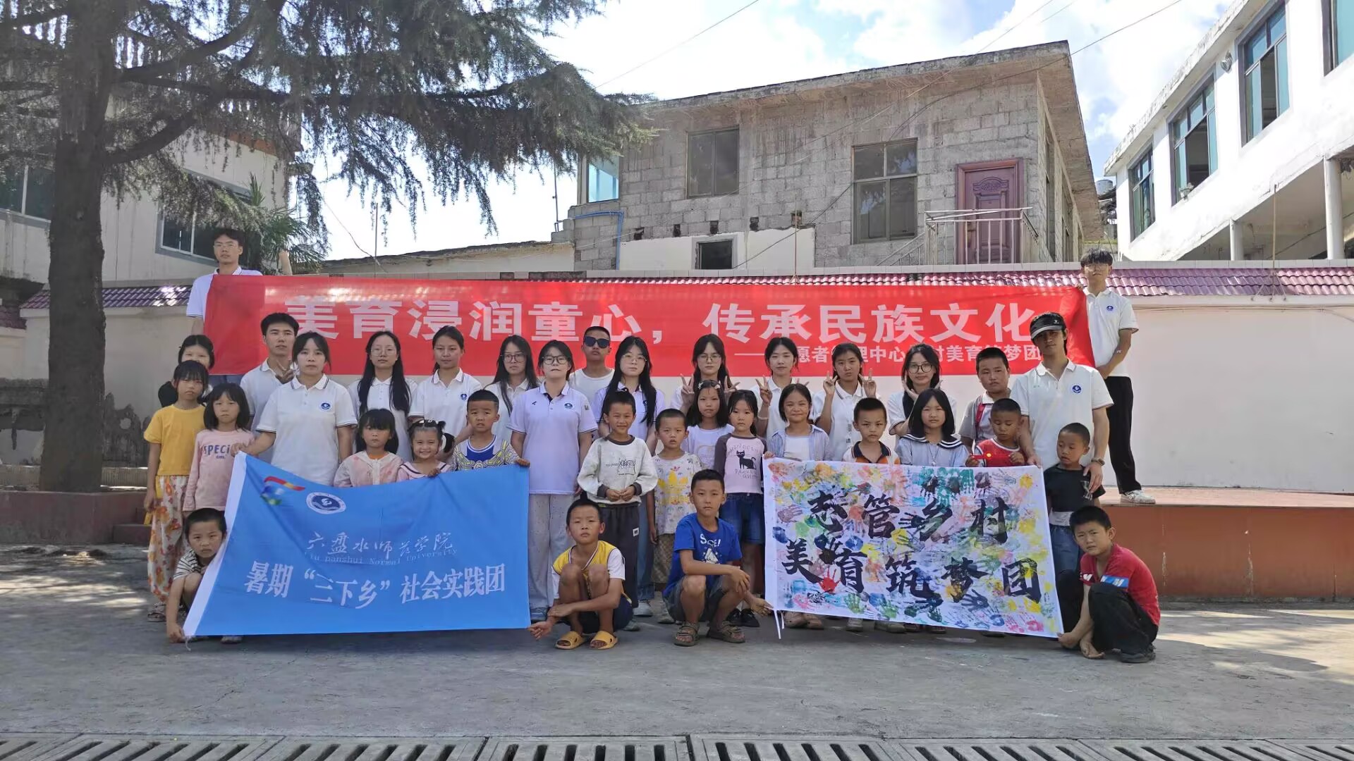 图为活动结束时,乡村美育筑梦团与学生一起开心合影,记录下这美好的瞬间。通讯员汪永站 摄