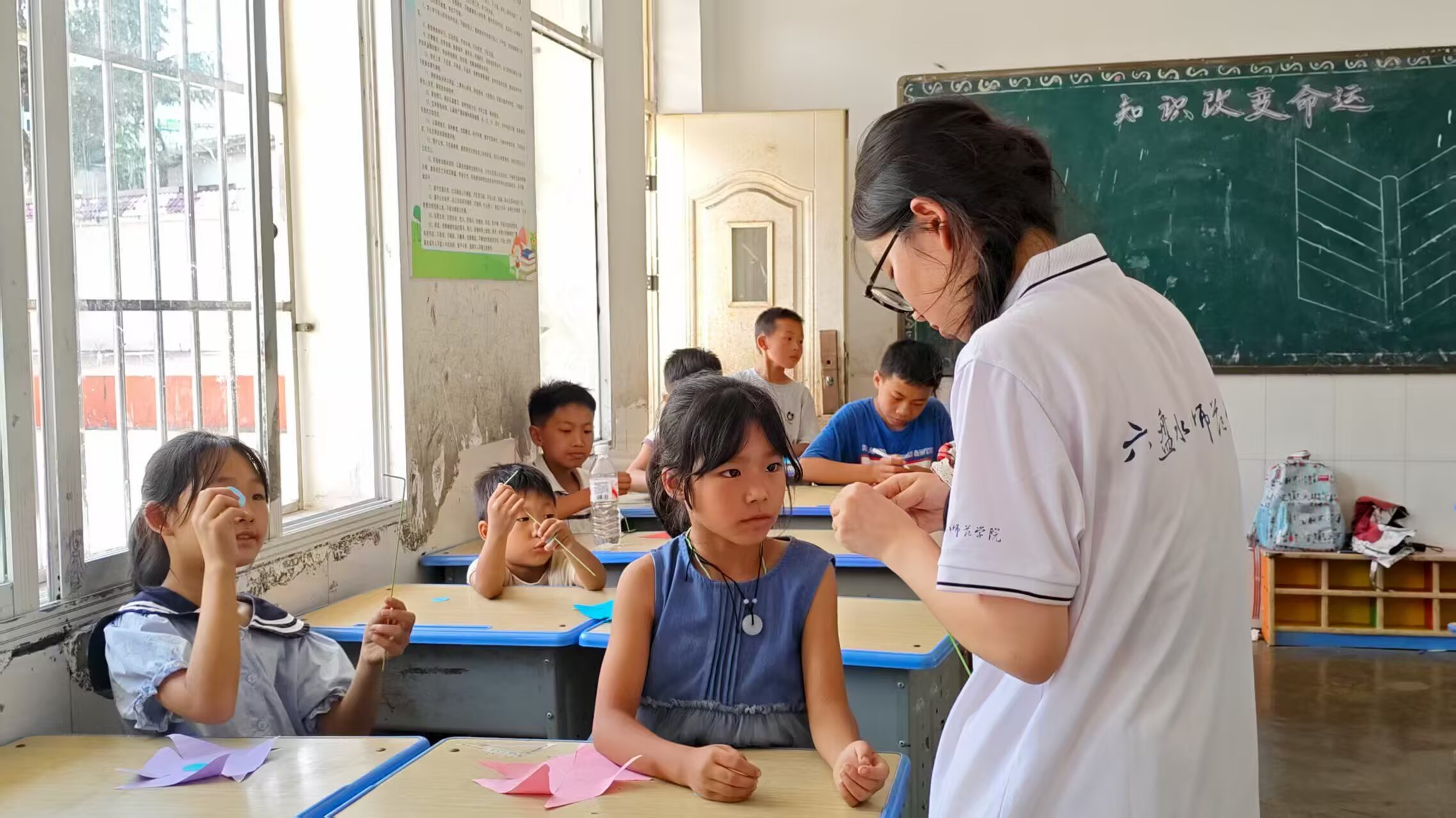 为更好的践行国家政策,促进乡村振兴,提升乡村教育质量。7月21日,六盘水师范学院校团委志愿者管理中心组织了“乡村美育筑梦团”支教团。团队以“美育浸润童心,传承民族文化”为核心,在水城区米箩镇倮么小学开展了一系列三下乡支教任务。团队成员利用专业知识为学生答疑解惑,也开展了许多有趣的如体育、绘画、手工等课程。期间,团队还对学生家庭情况进行了解,更好的对学生进行因材施教。此外,团队还了解到当地少数民族布依族的相关历史与服装特色。(通讯员 李慧)