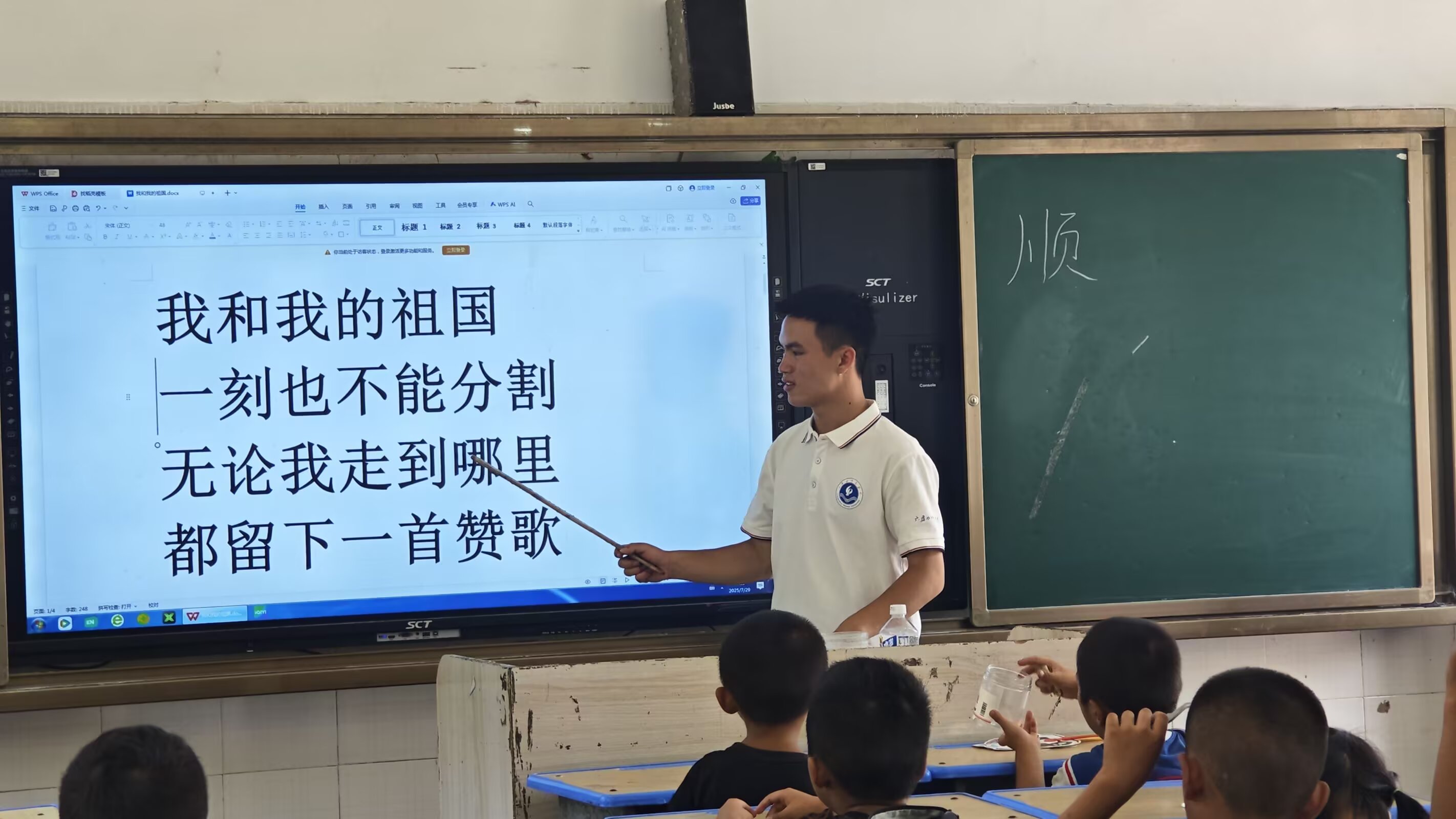 图为音乐课上,志愿者带领同学们演唱着充满家国情怀的歌曲,歌声激昂而深情。 通讯员李慧 摄