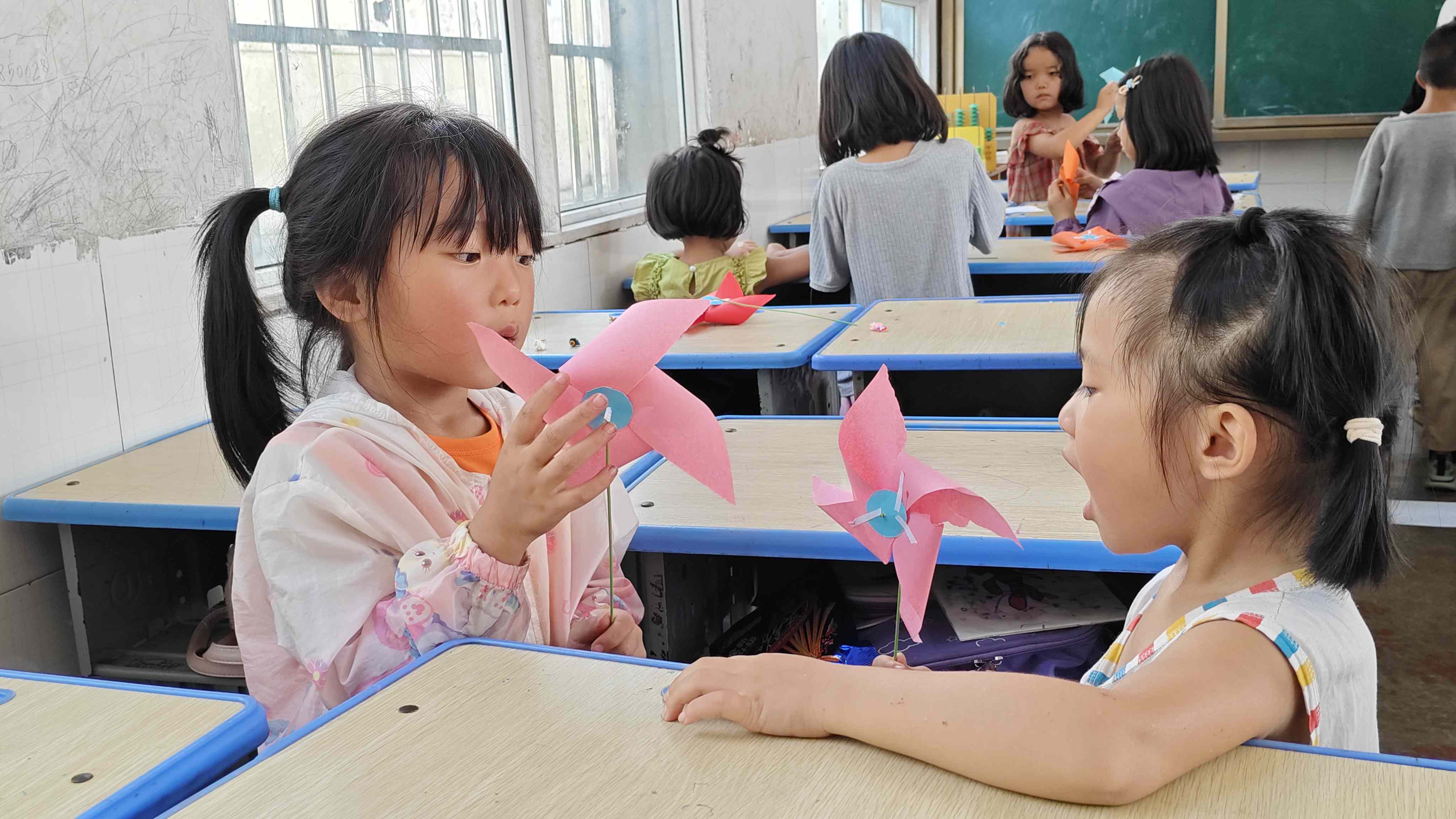 图为手工课结束后,学生自豪地展示手工课成品,脸上露出了成功的喜悦。 通讯员夏雨桐 摄