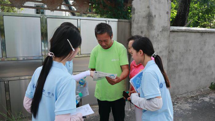 在重走甘祖昌将军曾带领村民修建水库的道路时,队员们手持推普材料,主动与沿途村民交流,一边聆听红色往事,一边细致询问村民日常使用普通话的频率、交流中遇到的困难、学习普通话的意愿及偏好方式等。在傍晚的乡村巷陌间,队员们以“流动教学点”形式发放调查问卷,针对不同年龄段村民的语言使用习惯和学习需求展开深入了解,遇到村民研究问卷时,队员们顺势进行易错发音指导,在自然互动中完成语音示范与微调。