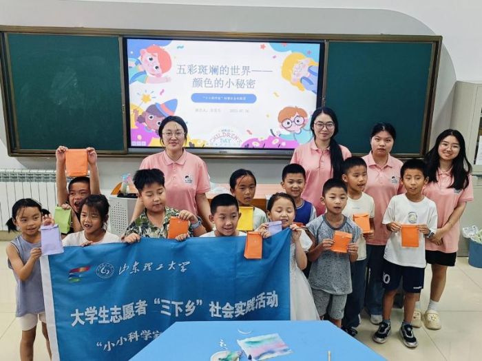 2025年7月26日,山东理工大学化学化工学院“小小科学家”科普社会实践团在淄博市科技馆开展“五彩斑斓的世界”科普课程。本次课程涵盖彩虹杯、彩虹赛跑、会膨胀的气球三个趣味实验,以及手工纸袋制作这一手工环节,通过精心设计的实验与手工活动,让孩子们在动手体验中感受科学的奇妙。