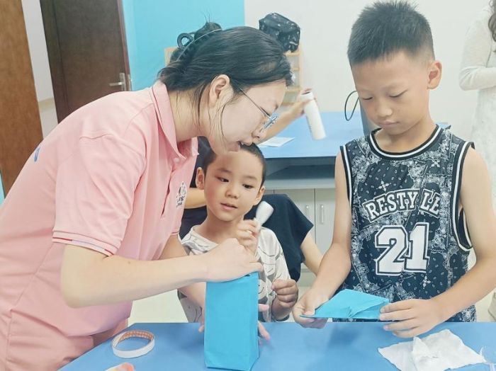 图为手工纸袋制作环节。郑芯茹摄 此次课程以趣味互动让科学扎根孩子心中。孩子们不仅在实验中收获了知识,更在手工制作里培养了耐心与创造力。实践团表示,这样的科普活动是连接理论与实践的桥梁,能让青少年在轻松氛围中爱上科学、探索科学。未来,团队将持续打磨课程内容,创新活动形式,走进更多场所开展科普活动,让科学的种子在更多孩子心中发芽、生长,为培养新一代具有科学素养的青少年贡献力量,用知识与热情点亮他们探索世界的征程。