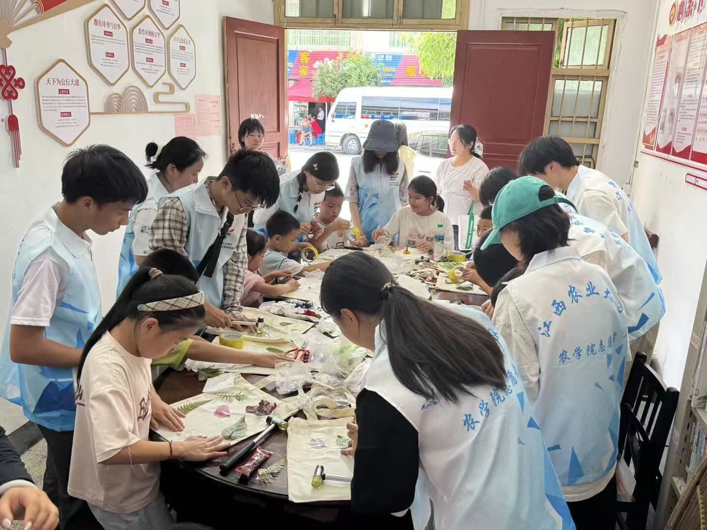为深入贯彻党的二十大精神,助力乡村振兴,弘扬志愿服务精神,7月1日至7日,江西农业大学“绿染茶山花引路,红传薪火少年行”社会实践队13名师生奔赴赣州市上犹县五指峰乡,开展为期6天的“三下乡”社会实践活动。队员们结合专业特长,通过植物拓印教学、荒地撒种劳动、爱心助农餐等系列活动,为当地乡村发展注入青春活力,以实际行动践行新时代青年的责任与担当。