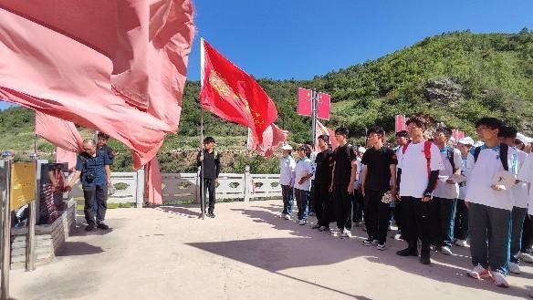 下午,真正的考验来临——徒步十九公里拉练至烈士陵园。实践团和漳县一中国旗班及校团委书记张百林老师,高举旗帜,徒步前进。尽管路途漫长,但无人掉队,大家互相鼓励,用脚步丈量革命先辈曾走过的路,用意志体会长征精神的伟大。在烈士陵园,瞻仰了杨随成英雄的墓碑后,队伍举行了庄严的缅怀仪式。致敬、默哀、宣誓……在肃穆的氛围中,英雄的事迹与眼前的现实交汇,崇高的敬意与青春的誓言共鸣。