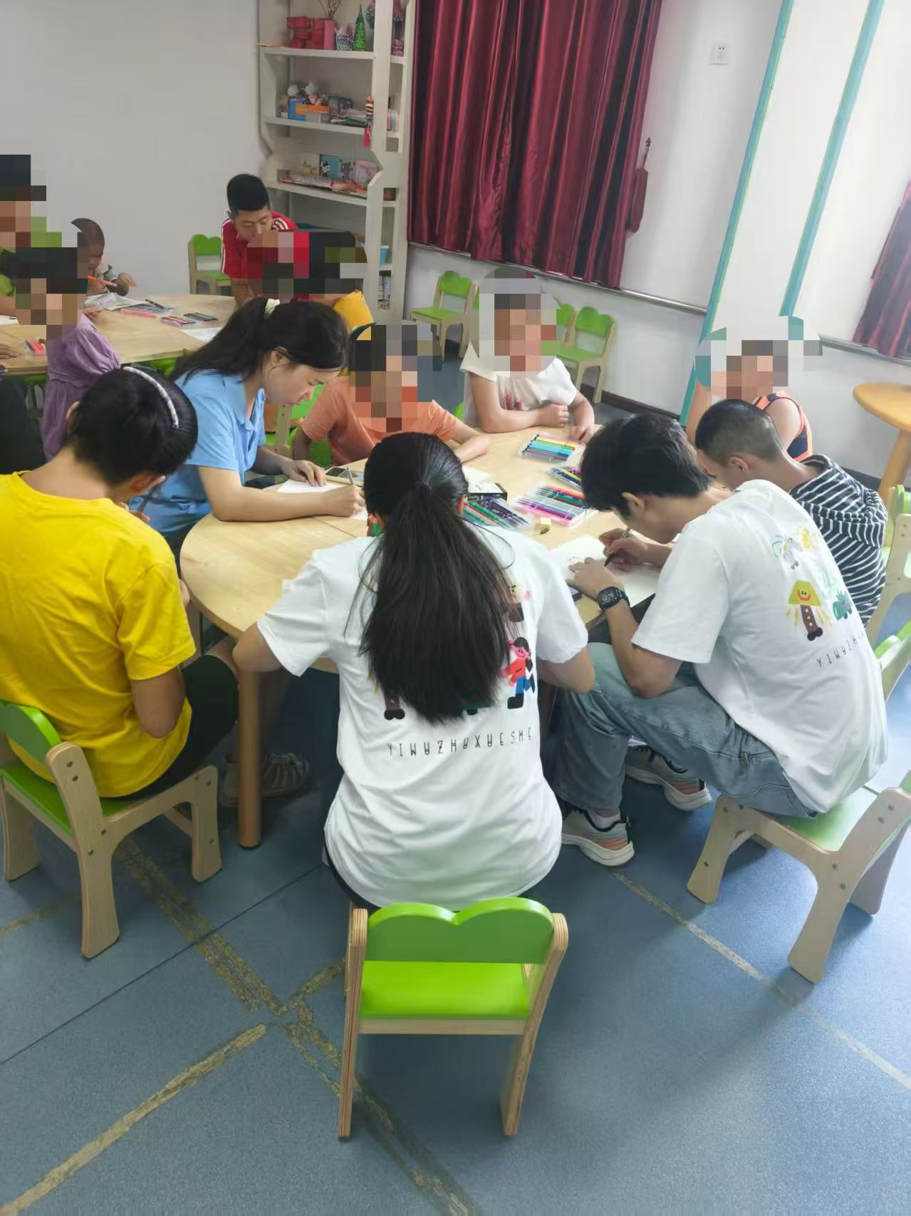 图为志愿者带领孩子们一起画画,叶雨涵供图