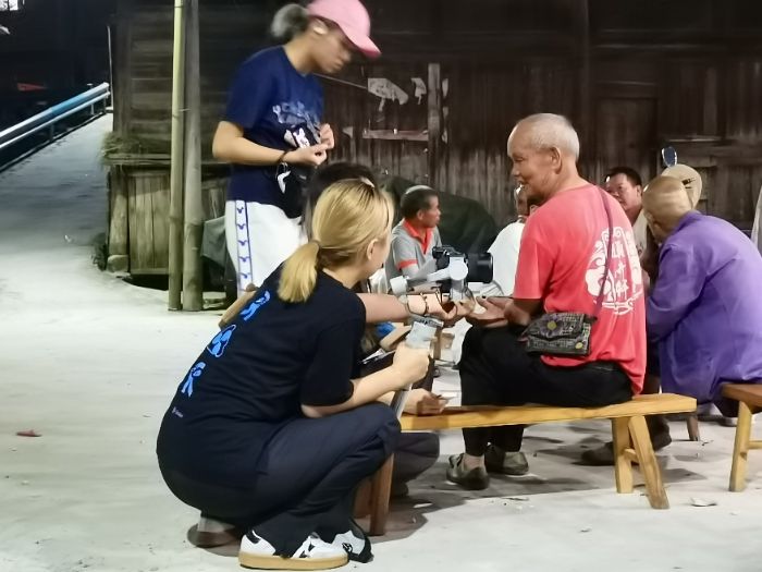▲图为实践队员调研地扪村民,协助村民填写问卷 杨璦聰摄