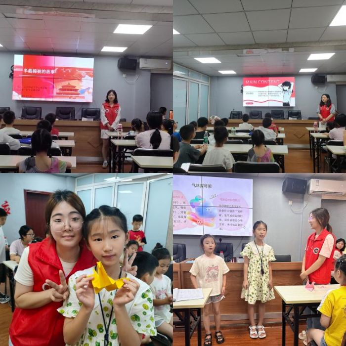儿童关爱:发挥专业优势服务留守儿童 在通江县牌坊街社区“童伴之家”,团队针对留守儿童开展系列服务活动。作为心理学院实践团队,成员结合专业特色,设计“红色教育+安全普及+心理引导+手工互动”组合活动:通过《半截棉被》等红色故事开展爱国主义教育;以情景模拟形式讲解溺水防范、反诈安全知识;借助“情绪小怪兽”互动游戏引导孩子表达内心感受;与孩子共同折千纸鹤,传递温暖与祝福。活动覆盖社区20余名留守儿童,有效丰富了孩子们的暑期生活。