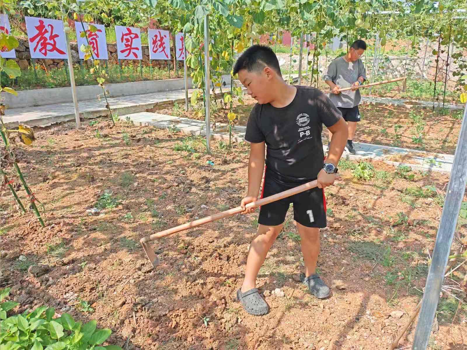 图为实践队队员带领小朋友在葫芦地进行劳动教育。蒙明哲 供图