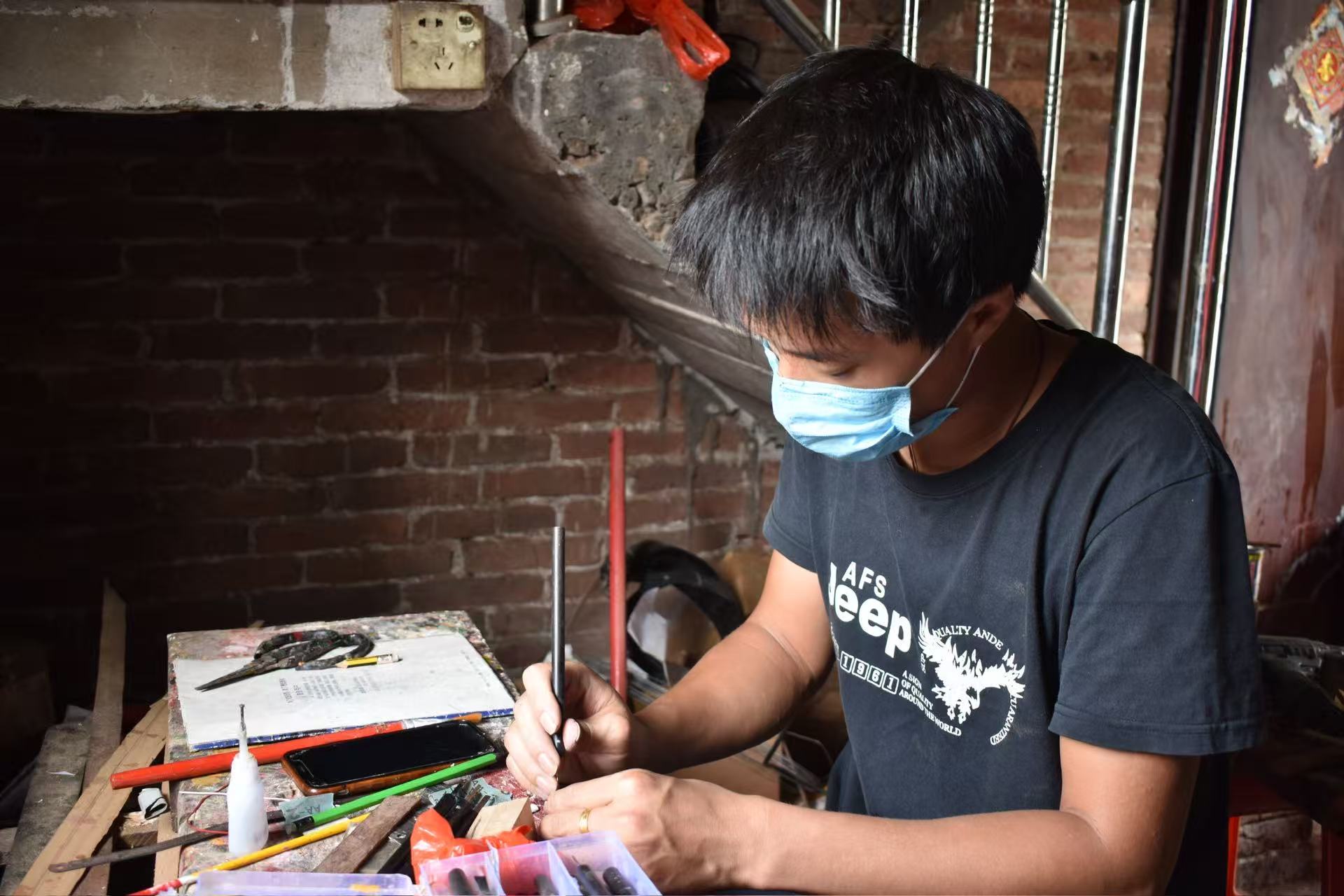 采访中,师傅向我们介绍了龙头雕的制作工艺。他表示,自己从初中时期便进入这一行业,至今已坚守多年。制作一个龙头雕,需历经选材、画图、打磨、上色等多道复杂工序,全程耗时长达一个月。由于工作室空间相对封闭,夏季室内十分闷热,但他每天都会在里面待上一整天,潜心投入制作。