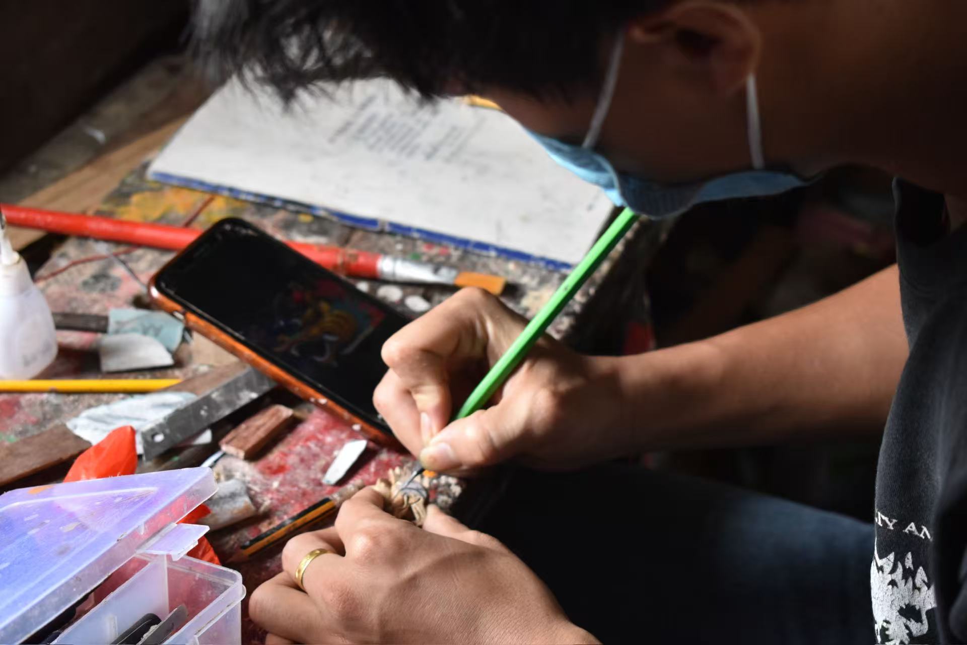 时间来到8月28日上午,南粤青创实践团又走进了一位龙头雕传统手工师傅的工作室。